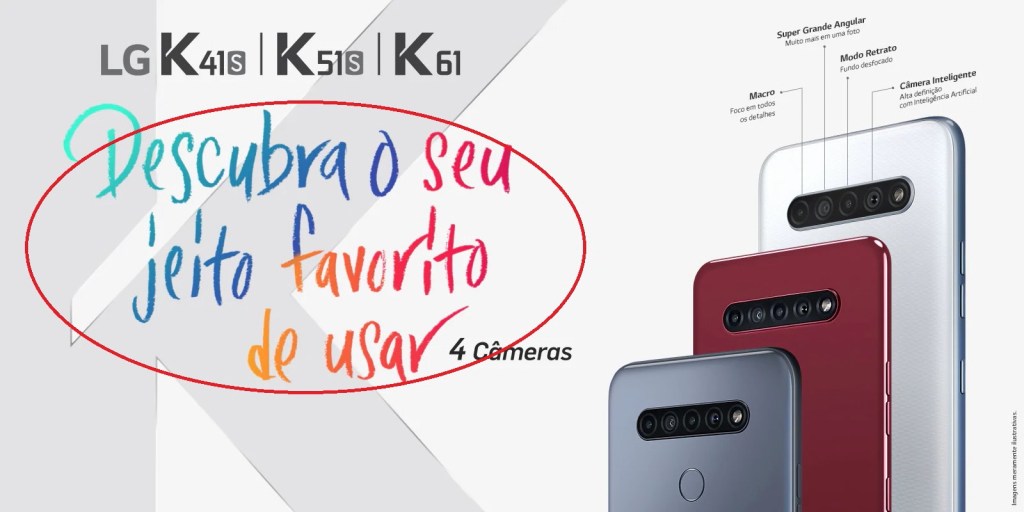 The next principle is proximity. This principle says that all the related items must be phisically closer. In the LG advertisement were marked three diferent groups of texts. They are related. For example, The LG K41s, K51s, and K61 and the models of the cellphone, so they are samentically related.